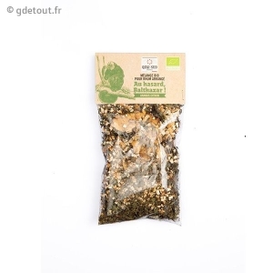 Vous aimez le rhum arrangé ? Vous obtiendrez une boisson exquise en vous procurant ce mélange bio nommé : "Au hasard, Balthazar !" Ce sachet contient des ingrédients déshydratés comme l'ananas, le citron et la menthe pour un rhum arrangé savou