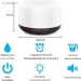 Fonctions : Vrai diffuseur d'huiles essentielles, lumières LED contrôlable via une télécommande, vidéos HD couleur avec son, fonction détection mouvement avec alerte sur smartphone, enregistrement sur carte SD ou par le réseau Wi-Fi, contrôle et visionnage à distance sur téléphone portable
